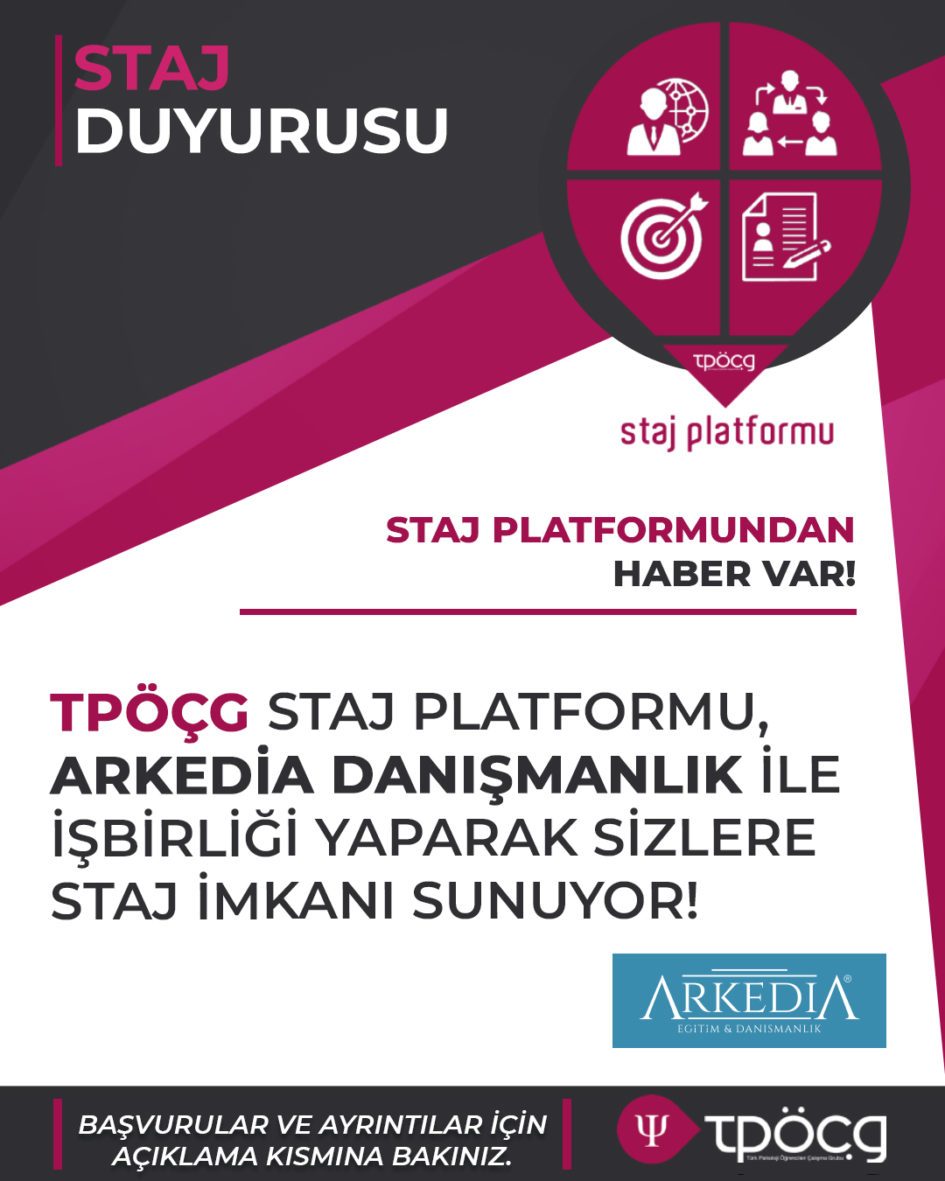 TPÖÇG Staj Platformu Arkedia Eğitim&Danışmanlık ile işbirliği yaparak sizlere staj imkanı